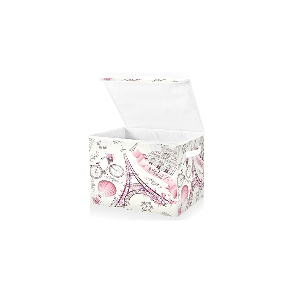 Storage Boxes with Lids, Paris Eiffel Tower Flower Large Storage Basket Organizer Shelves Cube Bin Toy Clothes Underbed