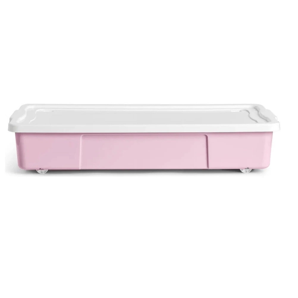 47L Underbed Storage Plastic Box With Wheels & Lids Nestable Utility Pink