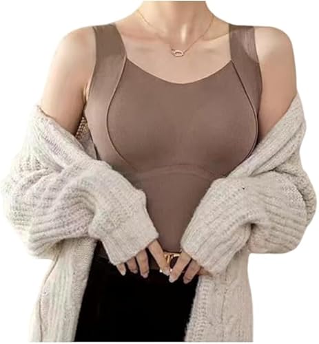 YGSIKY Winter Warm Tank Tops for Women,Winter Thickened Warm Tank Top with Shelf Bra,Thickened Winter Warm Tank Top,Women Fleece Lined Vest Camisole Sleeveless Undershirt Thermal Top (XL,Brown)