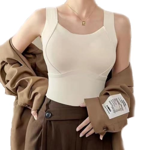 YGSIKY Winter Warm Tank Tops for Women,Winter Thickened Warm Tank Top with Shelf Bra,Thickened Winter Warm Tank Top,Women Fleece Lined Vest Camisole Sleeveless Undershirt Thermal Top (XL,Beige)