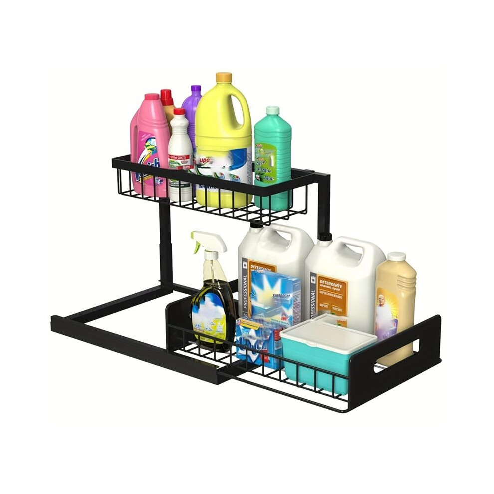 Under The Sink Organizer 2Tier Height Adjustable UnderSink Storage Black For Laundry Detergent Paper Towels Toiletries