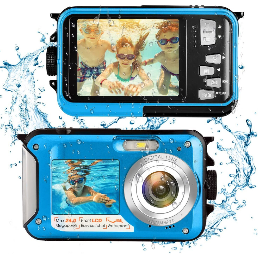 Waterproof Child Camera Underwater Camera 3 Meters Waterproof Before and After Dual Camera Swimming Outdoor,Blue