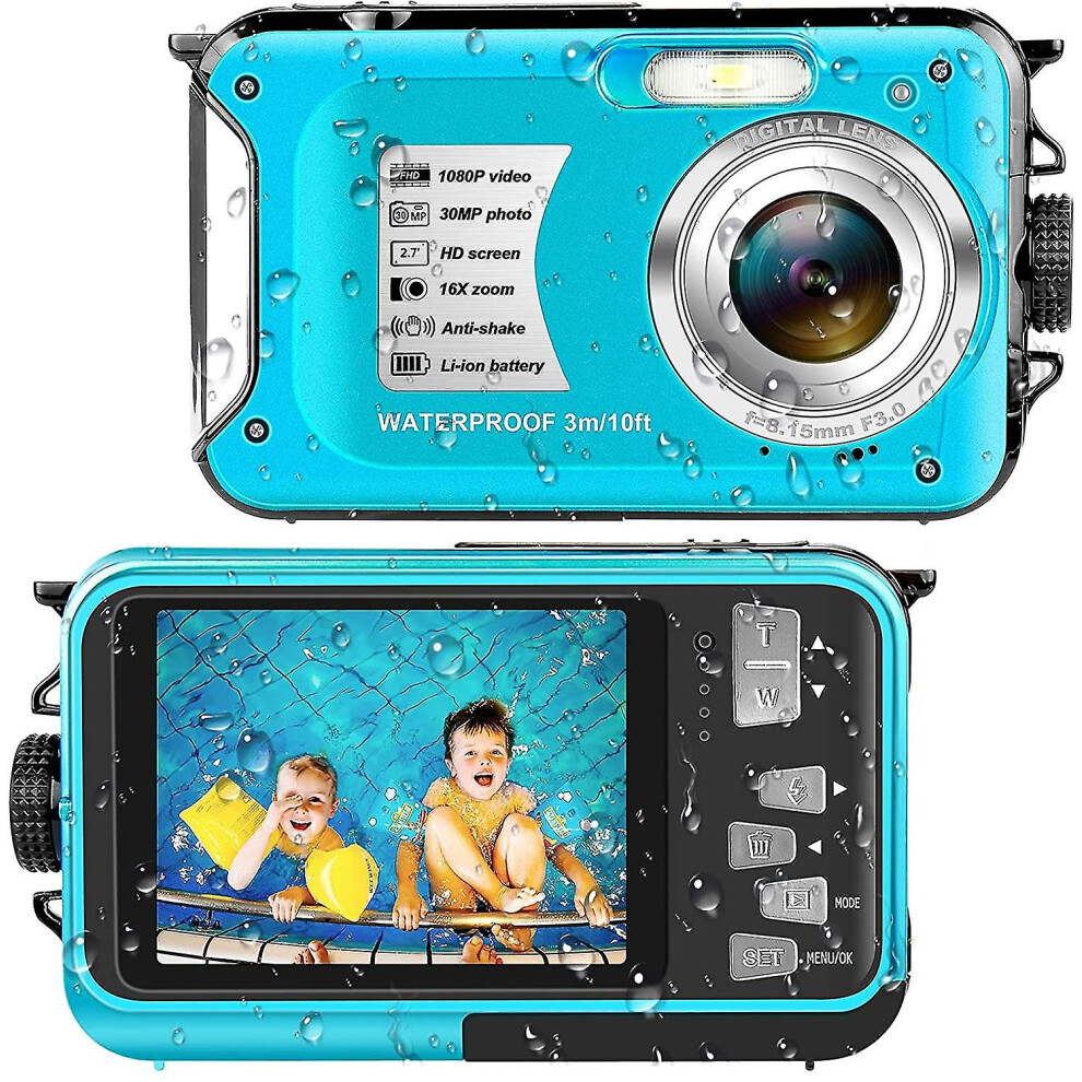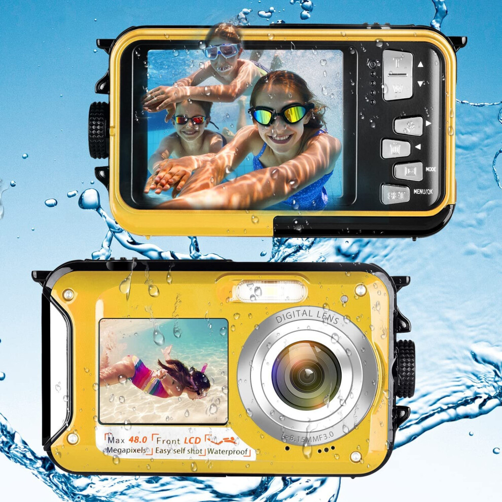 Waterproof Camera, 2.7K Full HD Underwater Camera, Digital Waterproof Camera with 48 Megapixel 16x Digital Zoom, Dual Screen Selfie Digital ..