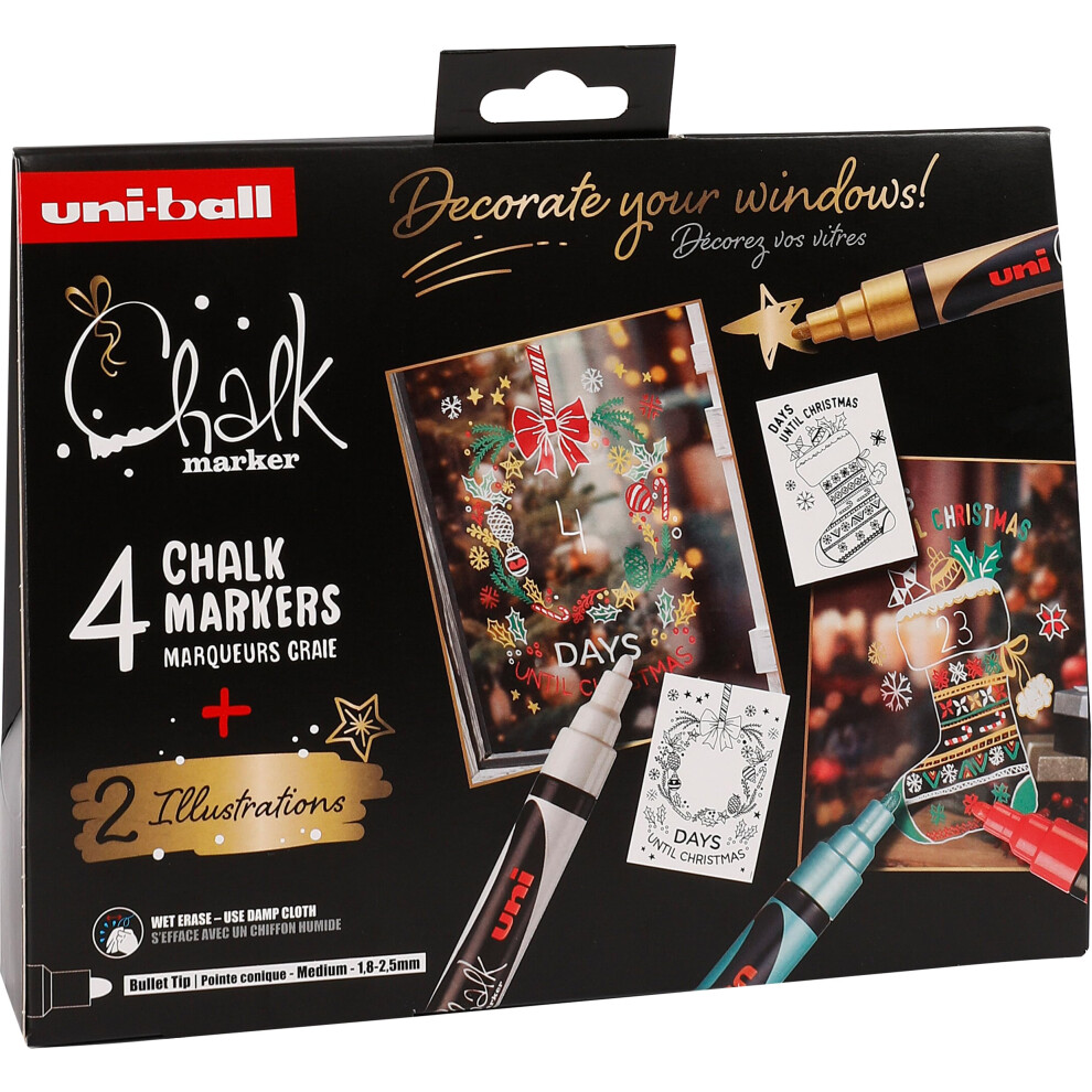 uni-ball Liquid Chalk Pens. Multi-Purpose Wipeable and Erasable Coloured Markers for Blackboards Chalkboards Whiteboards Glass Mirrors Plastic Windows