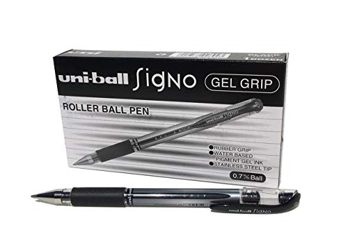uni-ball - Signo Gel Grip, Fine Nib, Black Ink, Rollerball Gel Pens (12pc Set) - Smooth, Comfortable, Long Lasting, Japanese Quality, for School, Work, Office, Study, Teacher, Notes, Journal, Gift