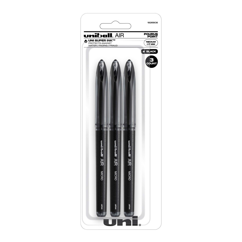 uni-ball AIR Rollerball Pens Fine Point (0.7mm) Black 3 Count