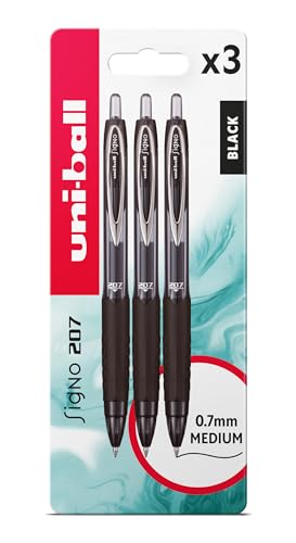 uni-ball UMN-207 SigNo 207 Rollerball Gel Pens. Premium Retractable Medium 0.7mm Ballpoint Tip for Super Smooth Writing, Drawing, Art, and Colouring. Fade & Water Resistant Uni Super Ink. 3 Pack Black