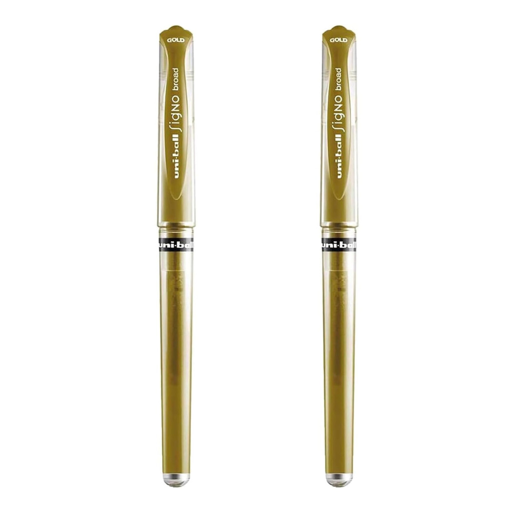 uni-ball Signo Pen Broad Metallic Gel Ink Rollerball - Metal 1mm Tip Nib 0.65mm Line Width With Rubber Grip - UM-153 - Gold (2)