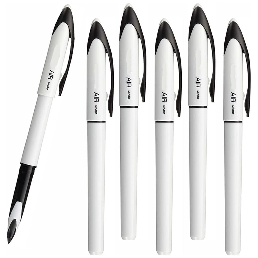 6 x Uni-Ball Air Rollerball Pen | With Unique Pressure Sensitive Air-Tip which Varies Line Thickness | 0.5mm Fine Point Nib, Black Ink | Loose in