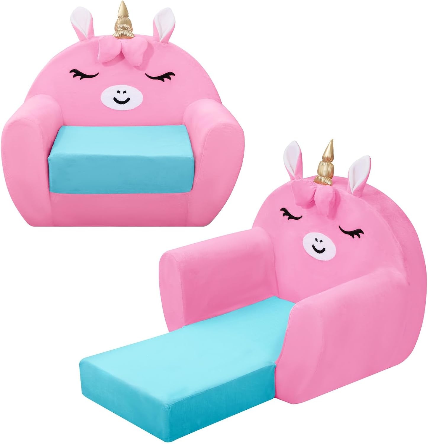 Kids Sofa Bed,Unicorn Toddler Chair 2-in-1,Foldable Toddler Couch Comfy for Gir