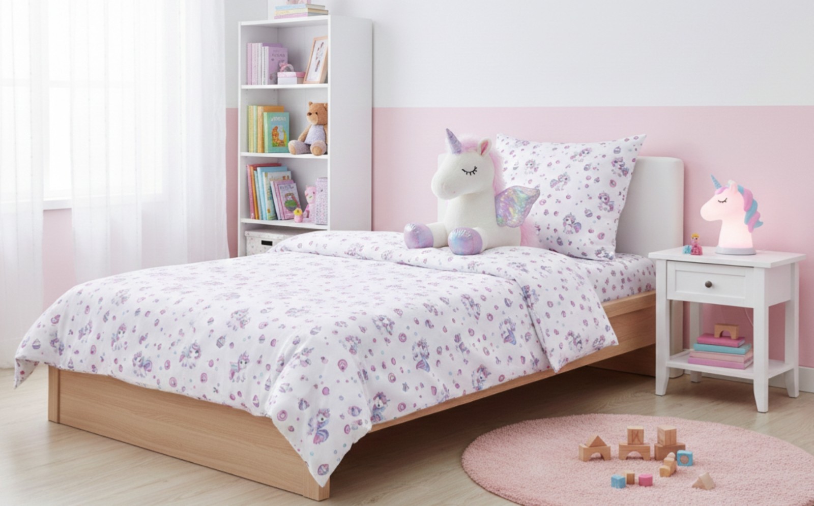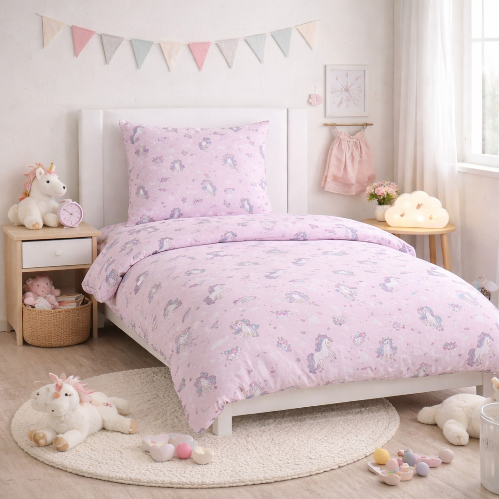 Kids Single Duvet Cover Set 100% Cotton Unicorn Dreams Children Bedding UK
