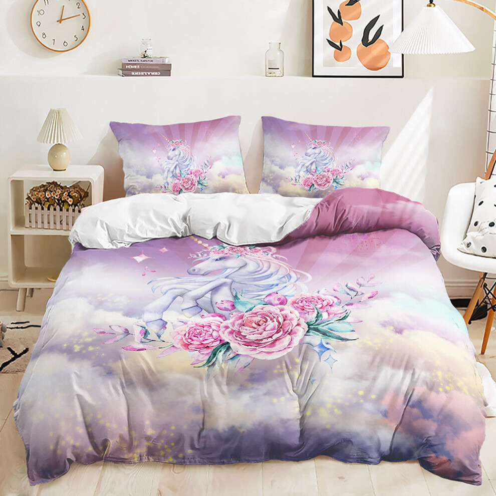(Style 01, Double (200X200CM)/3PCS) Unicorn Bedding Single Double King Duvet Cover UK