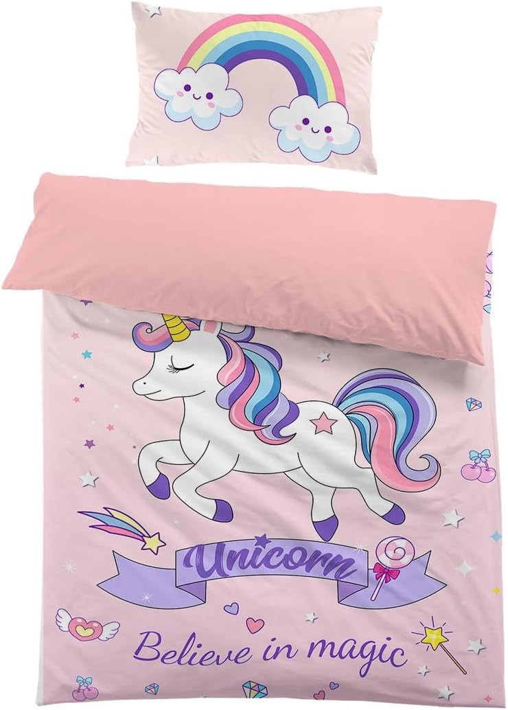 Kids Unicorn Bedding Set - Sparkly Unicorn Children's Duvet Cover Set Single size, Pink
