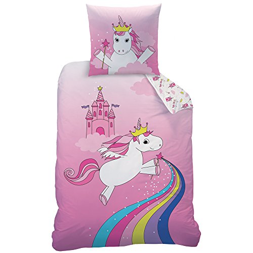 Matt & Rose Unicorn Princess Bedding Set, Cotton, Pink, 135 x 200 cm