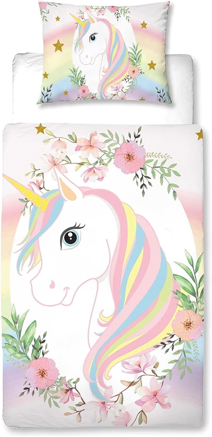 MUSOLEI Unicorn Bedding Set Kids Unicorn Single Duvet Cover and Pillowcase Chil
