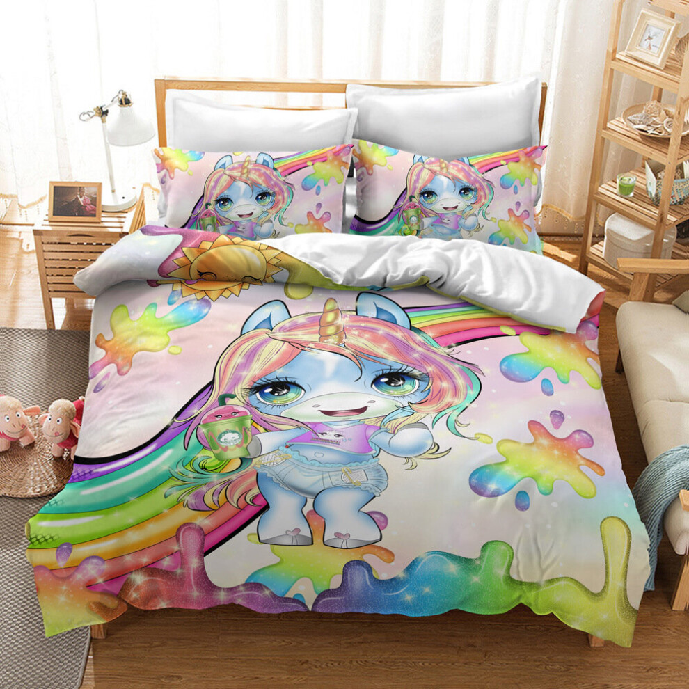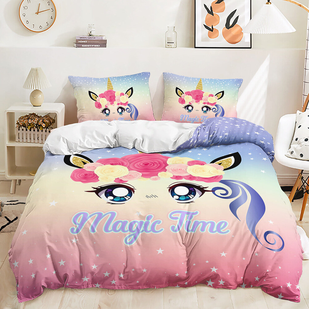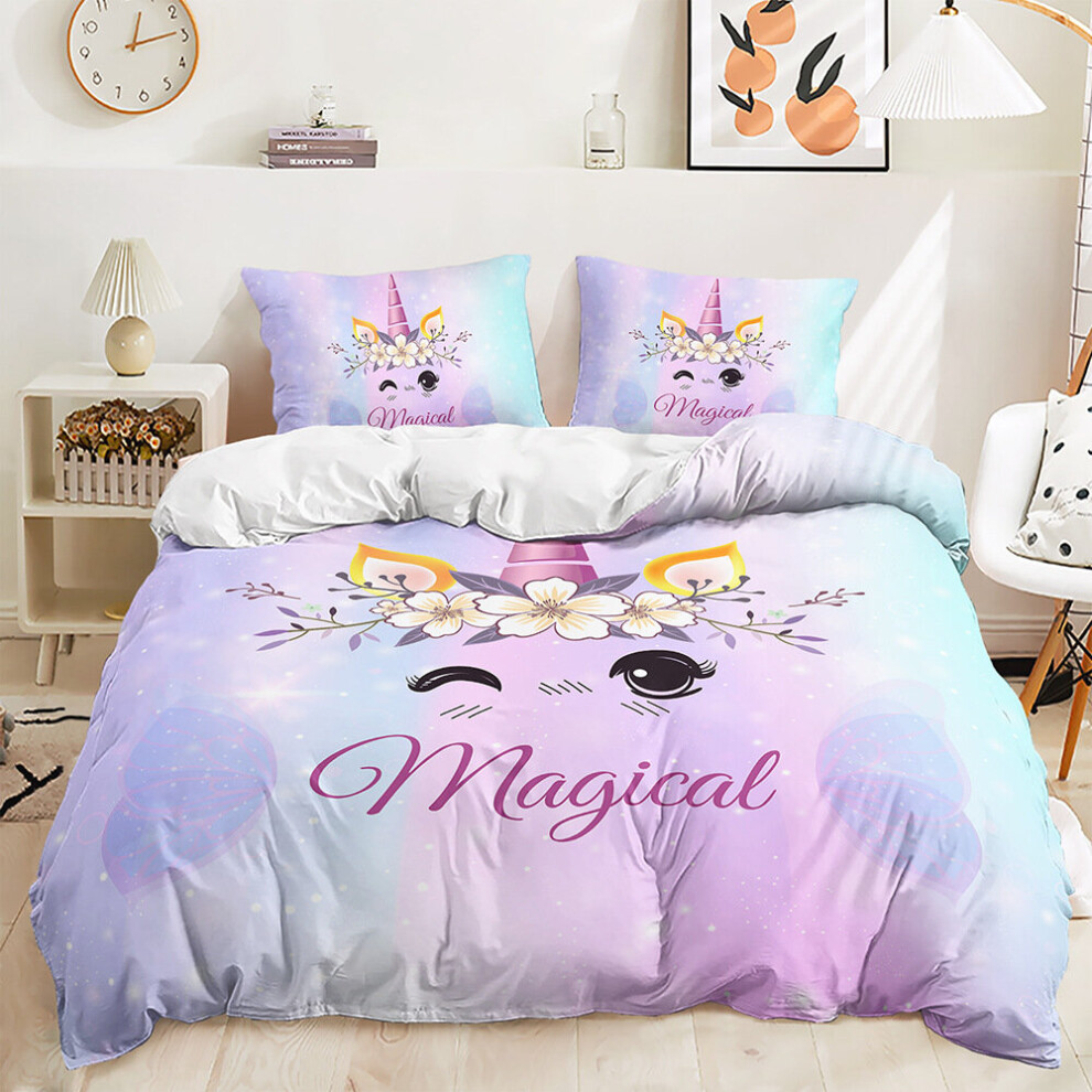 Unicorn Bedding Kids Double Duvet Set for Girls Pink Blue Bedding Quilt Cover S
