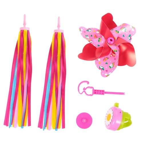 BCOATH Bike Handlebar Bell with Yellow-pink Tassels Unicorn Windmill Pink Daisy Bell Plastic Cycling Accessories for Scooters Tricycles Balance Bikes Easy to Install Decorative Kit for