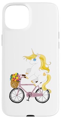 Cute Unicorn Riding Pink Bike For Kids Case for iPhone 15 Plus