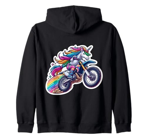 Unicorn Riding Dirt Bike Rider Girls Motocross MX Motorbike Zip Hoodie