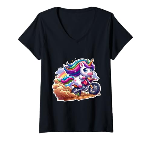 Women's Cute Unicorn Riding Dirt Bike Rider Girls Motocross MX Fan V-Neck T-Shirt