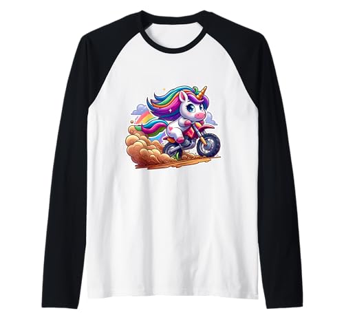 Cute Unicorn Riding Dirt Bike Rider Girls Motocross MX Fan Raglan Baseball Tee