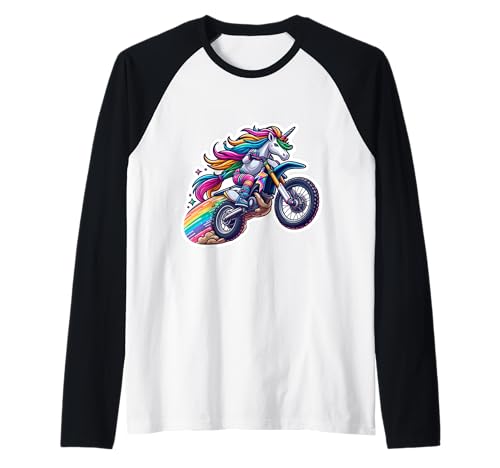 Unicorn Riding Dirt Bike Rider Girls Motocross MX Motorbike Raglan Baseball Tee