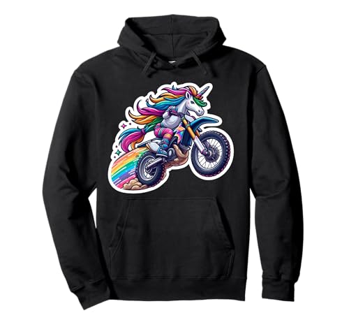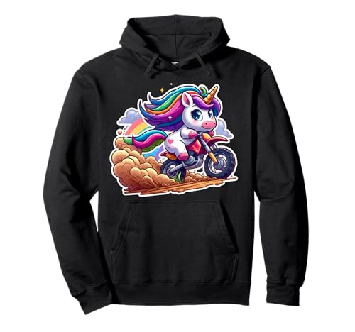 Cute Unicorn Riding Dirt Bike Rider Girls Motocross MX Fan Pullover Hoodie