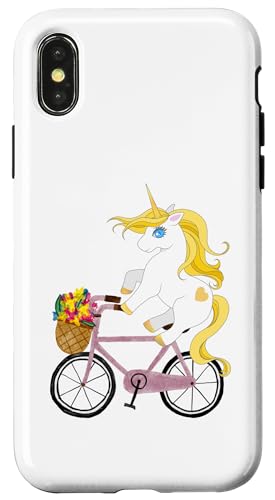 Cute Unicorn Riding Pink Bike For Kids Case for iPhone X/XS