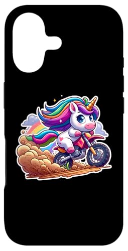 Cute Unicorn Riding Dirt Bike Rider Girls Motocross MX Fan Case for iPhone 16 Plus