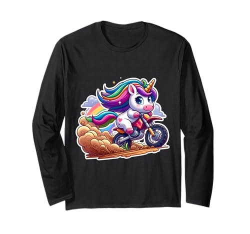 Cute Unicorn Riding Dirt Bike Rider Girls Motocross MX Fan Long Sleeve T-Shirt