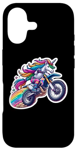 Unicorn Riding Dirt Bike Rider Girls Motocross MX Motorbike Case for iPhone 16 Plus