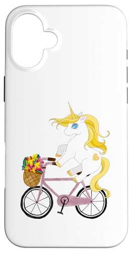 Cute Unicorn Riding Pink Bike For Kids Case for iPhone 16 Plus