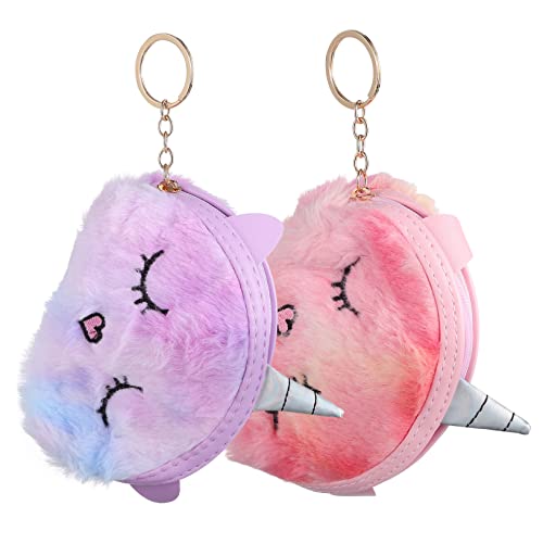 Garneck 2Pcs Plush Unicorn Change Purse Small Zipper Wallet for Coins Keys Cards Cute Soft Key Holder Bag for Students Office Use Random Color
