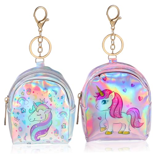 FRCOLOR 2 Pcs Cartoon Unicorn Coin Purses Plush Zipper Bags for Change Cards Lipstick Cute Unicorn Wallets for Bag Charms and Keychain Accessories
