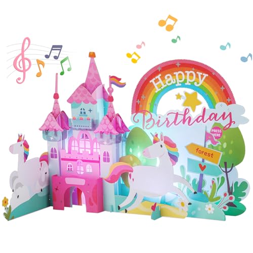 Aukuoy Unicorn Birthday Cards, Musical Birthday Cards of Colorful Unicorn with Cute Envelope, 3D Pop Up Birthday Card for Girls Kids Daughter Sister