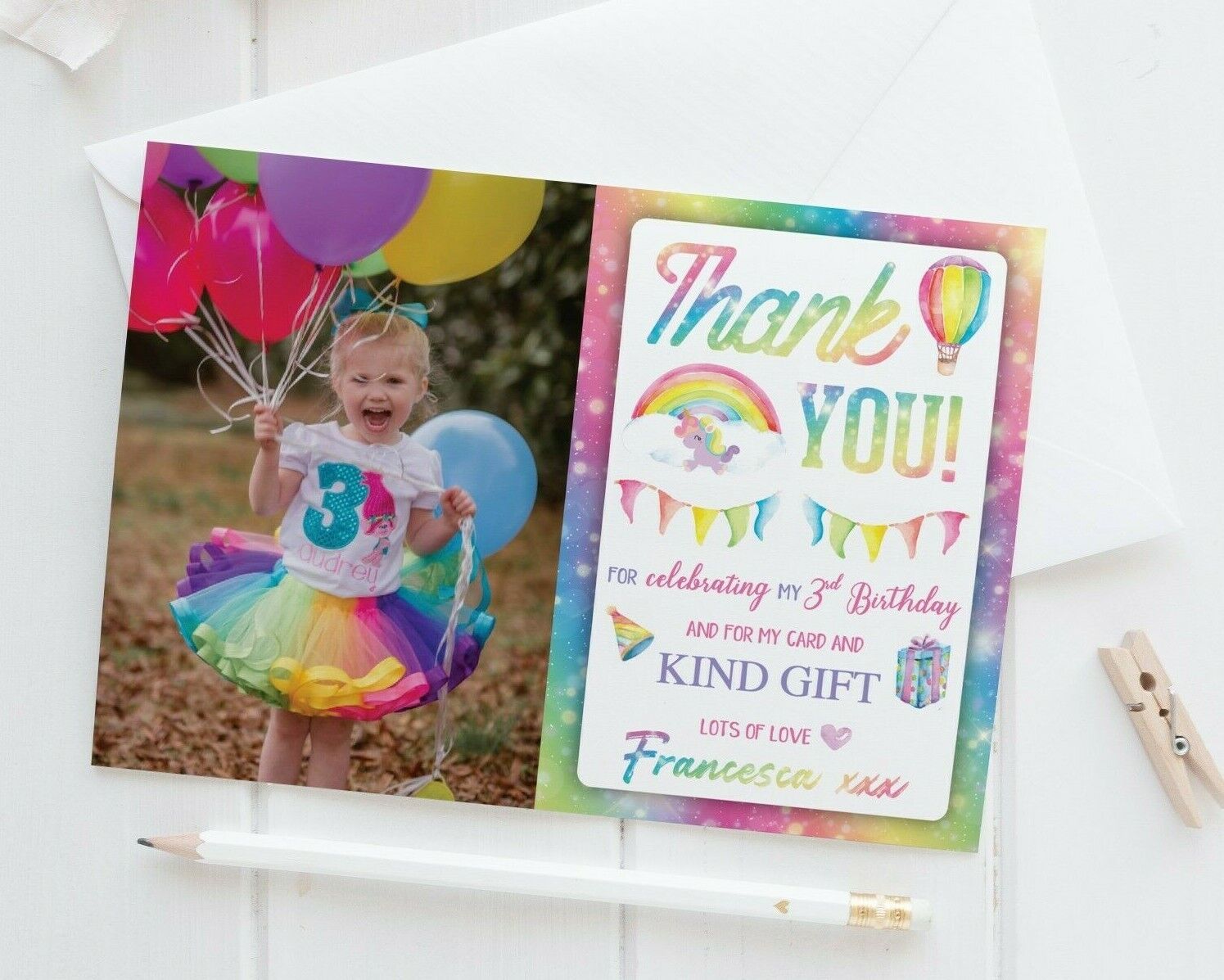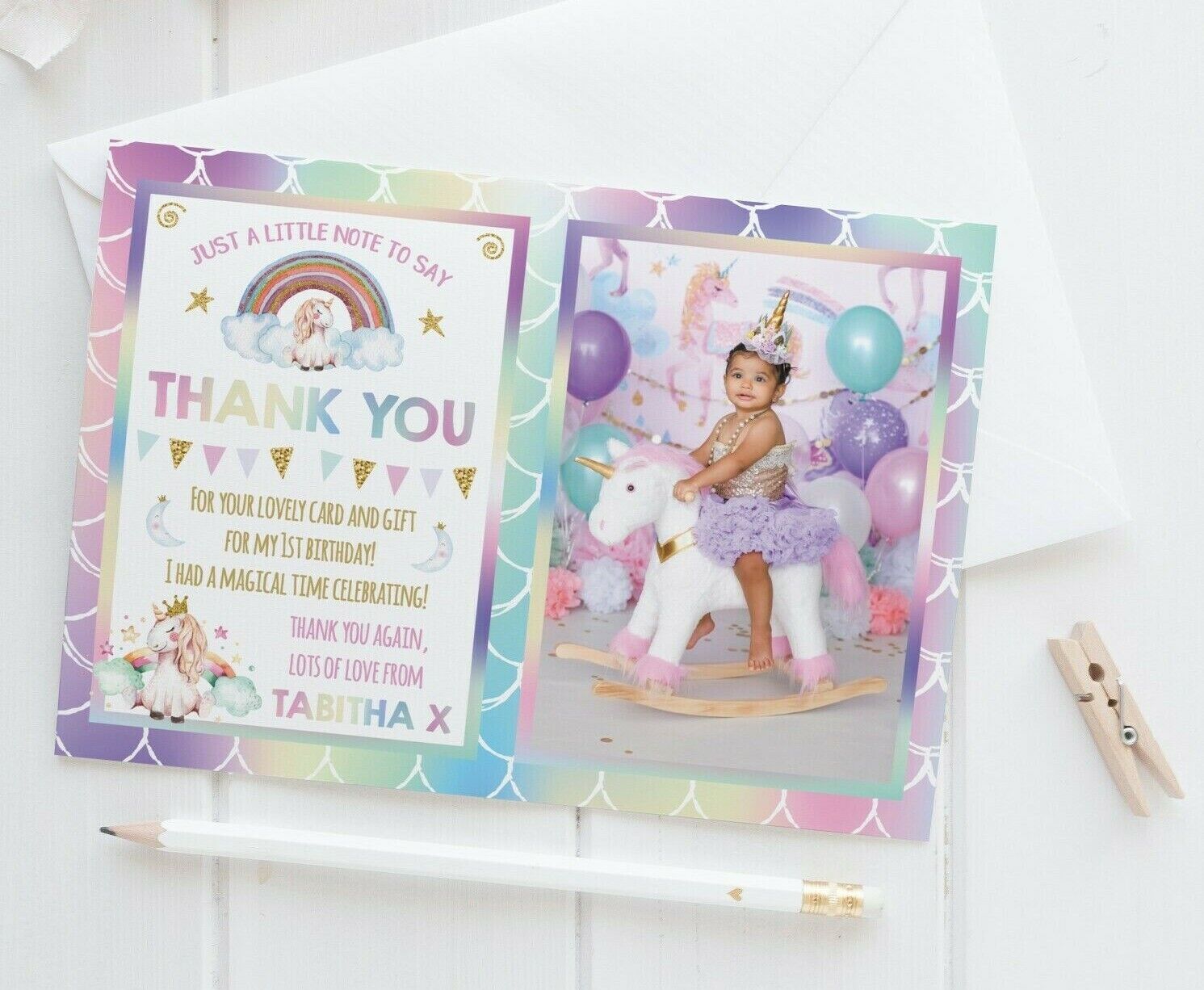 10 Personalised Photo Rainbow Thank You Cards Unicorn Birthday Thankyou Notes