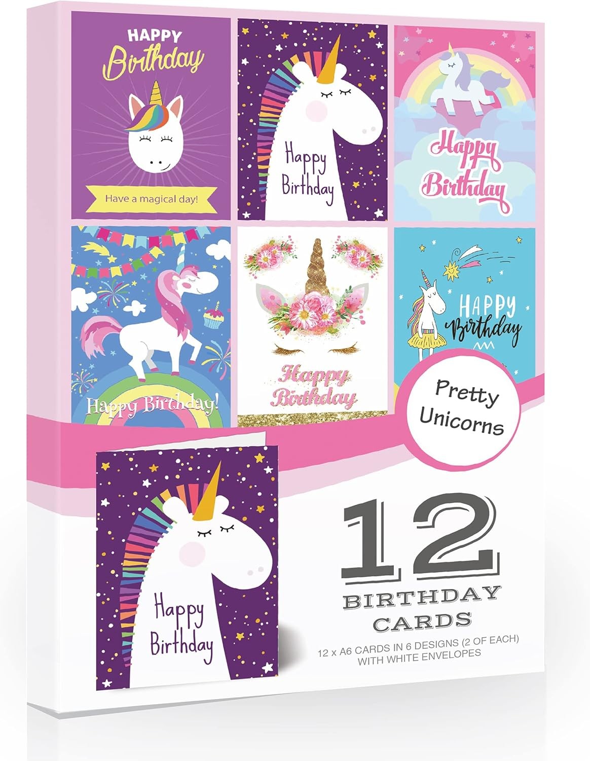 Olivia Samuel 12 x Unicorn Birthday Cards - Value Pack Fun Unicorn Designs with