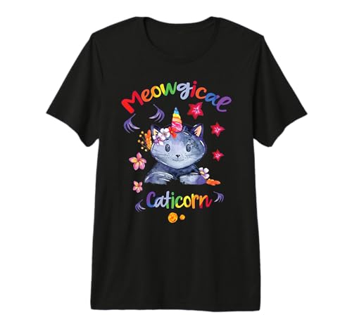 Rainbow Cat Caticorn Meowgical Dreams Unicorn Vibes Kitty Premium T-Shirt