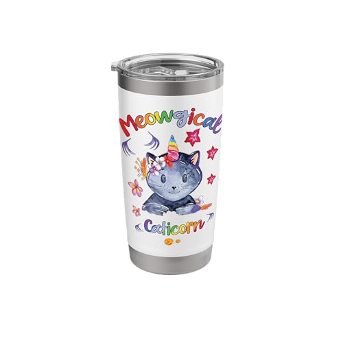 Rainbow Cat Caticorn Meowgical Dreams Unicorn Vibes Kitty Stainless Steel Insulated Tumbler