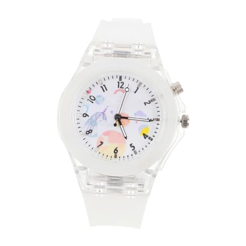 BESPORTBLE Luminous Quartz Student Watch with Colorful LED Light, Unicorn Jelly Silicone Wristwatch for Kids Boys Girls, White Glow-in-The-Dark Timepiece Suitable for School and Outdoor Use