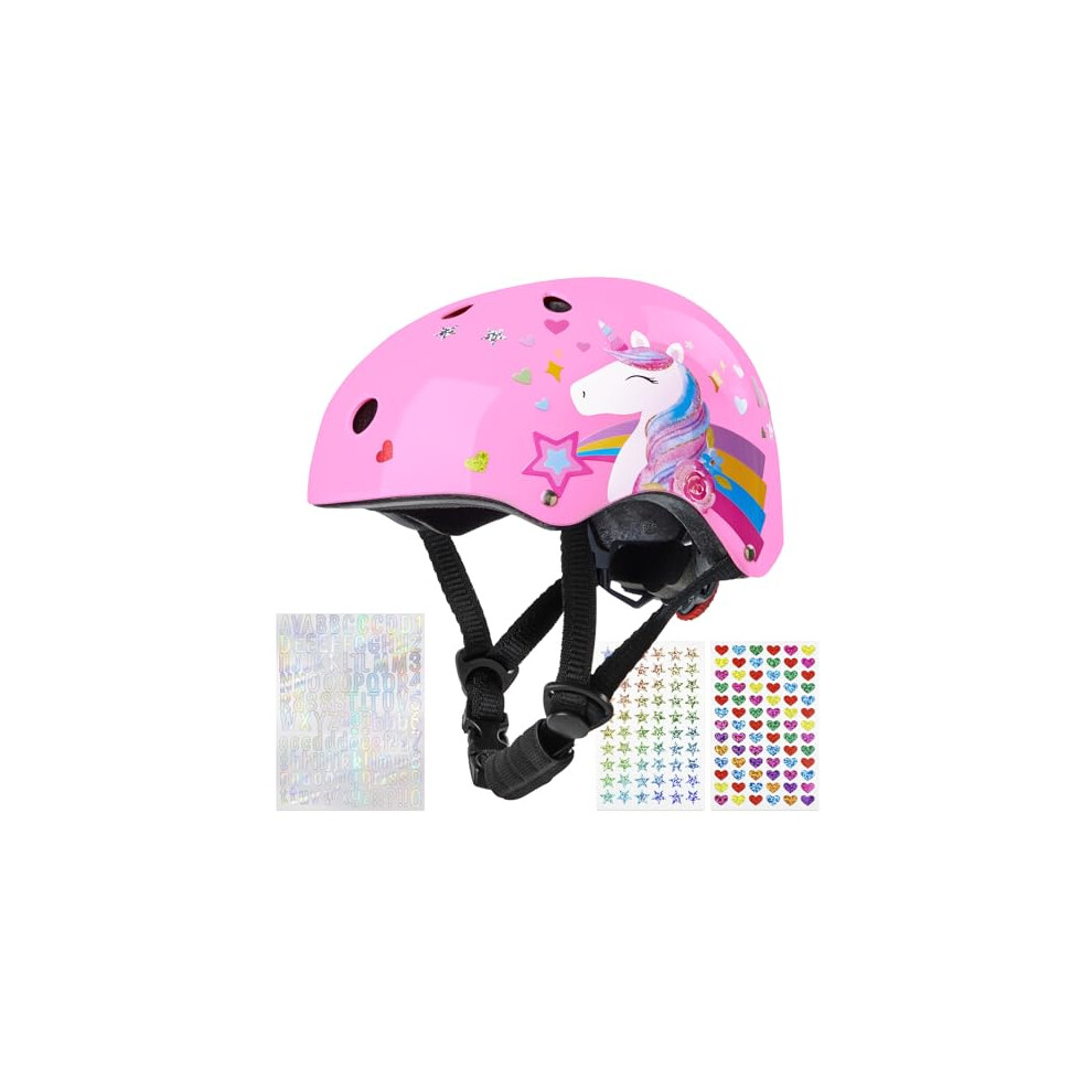 MHJY Kids Helmet and Pads Set with DIY Stickers Girls Bike Helmet Age 3-8 Years Unicorn Knee and Elbow Pads Adjustable Protective Gear for Children Cycle, Skateboard Scooter, Roller Skates