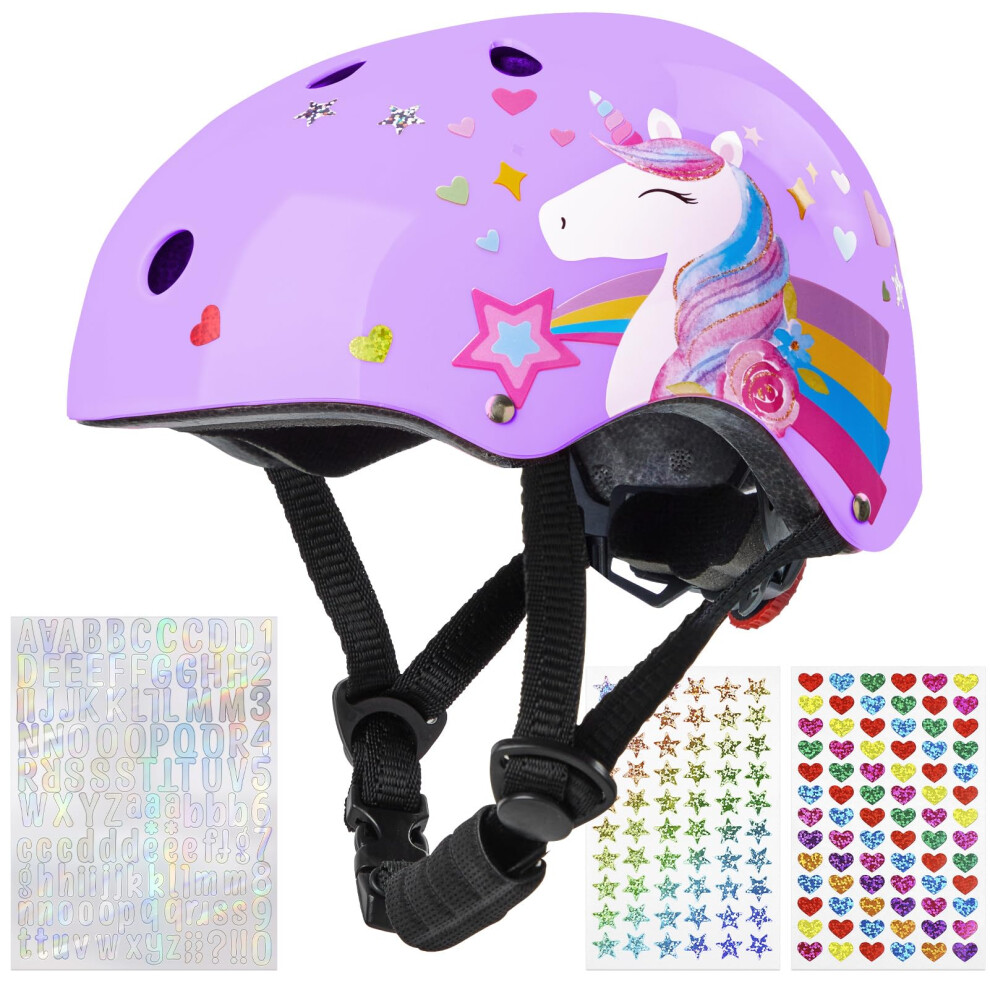 Little Nation Kids Bike Helmet – Safe & Adjustable Helmet for Bicycle, Scooter, and Roller Skates, Lightweight Design for Toddlers & Children (Purple Unicorn)