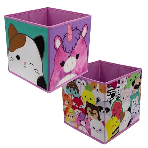 Squishmallows Officially Licensed Storage Boxes | 2 pack Foldable Storage Cubes Cat, Unicorn Design | Perfect For Organising Children's Room, Kids Playroom, Multicoloured