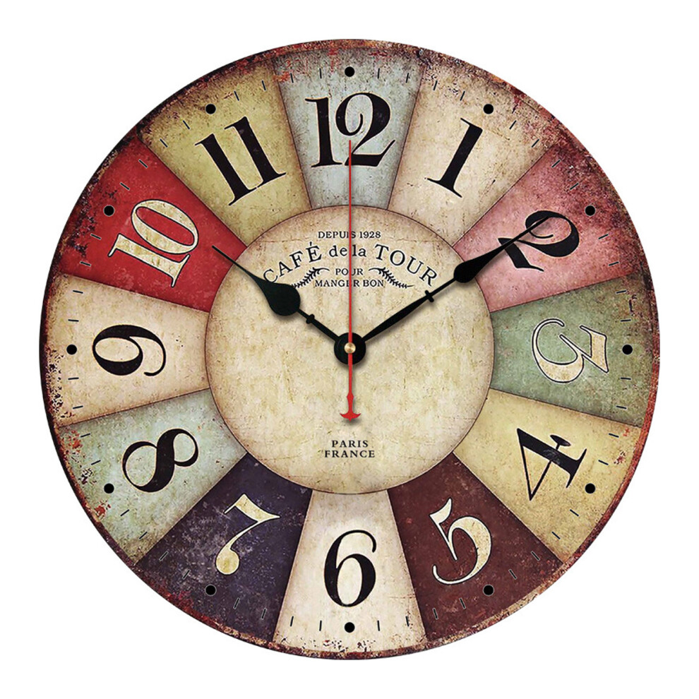 Vintage Style Decorative Wall Clock, Silent Non-Ticking Battery Operated Wooden Clock With Easy To Read Large Arabic Numerals, Unique Design And Envir
