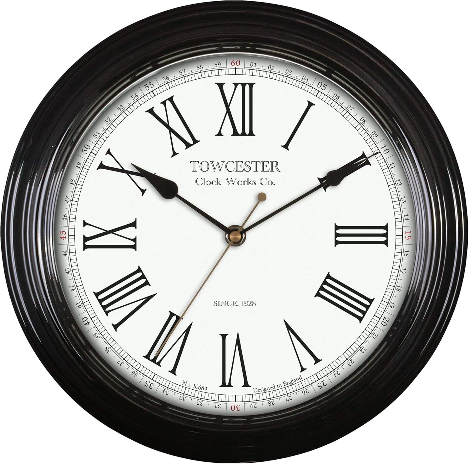 Traditional Quartz Wall Clock with Large Roman Numerals, Black, 30 cm l x 30 cm