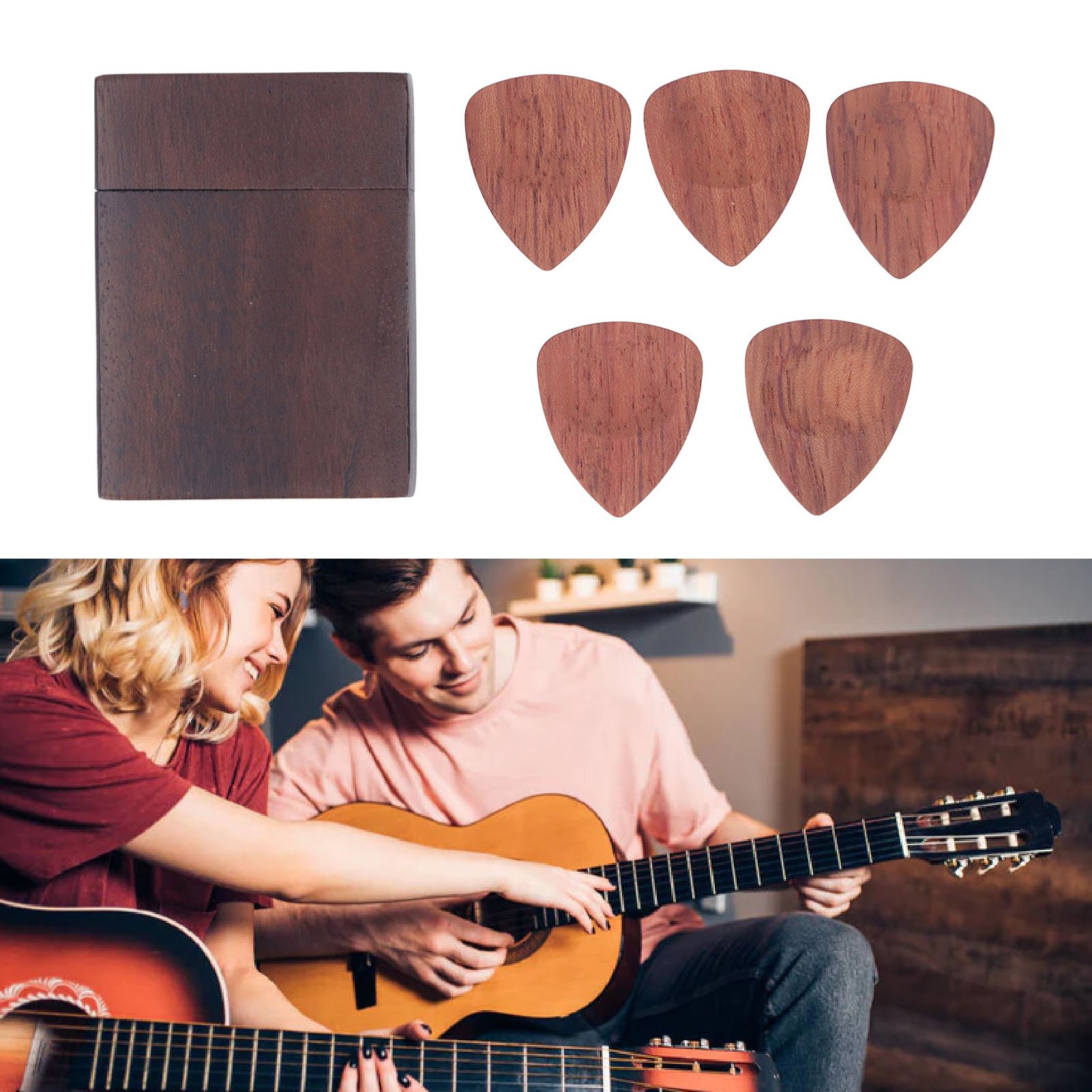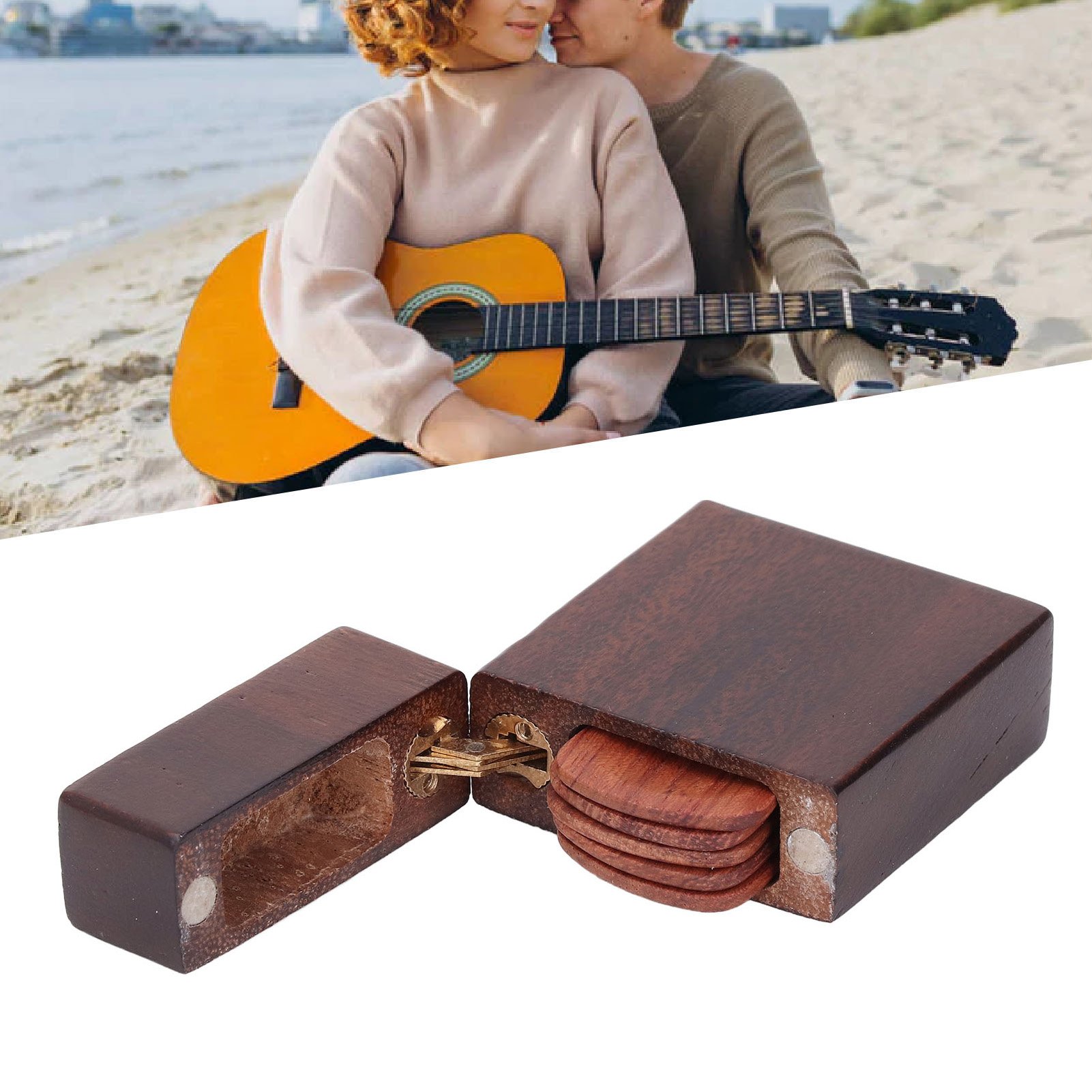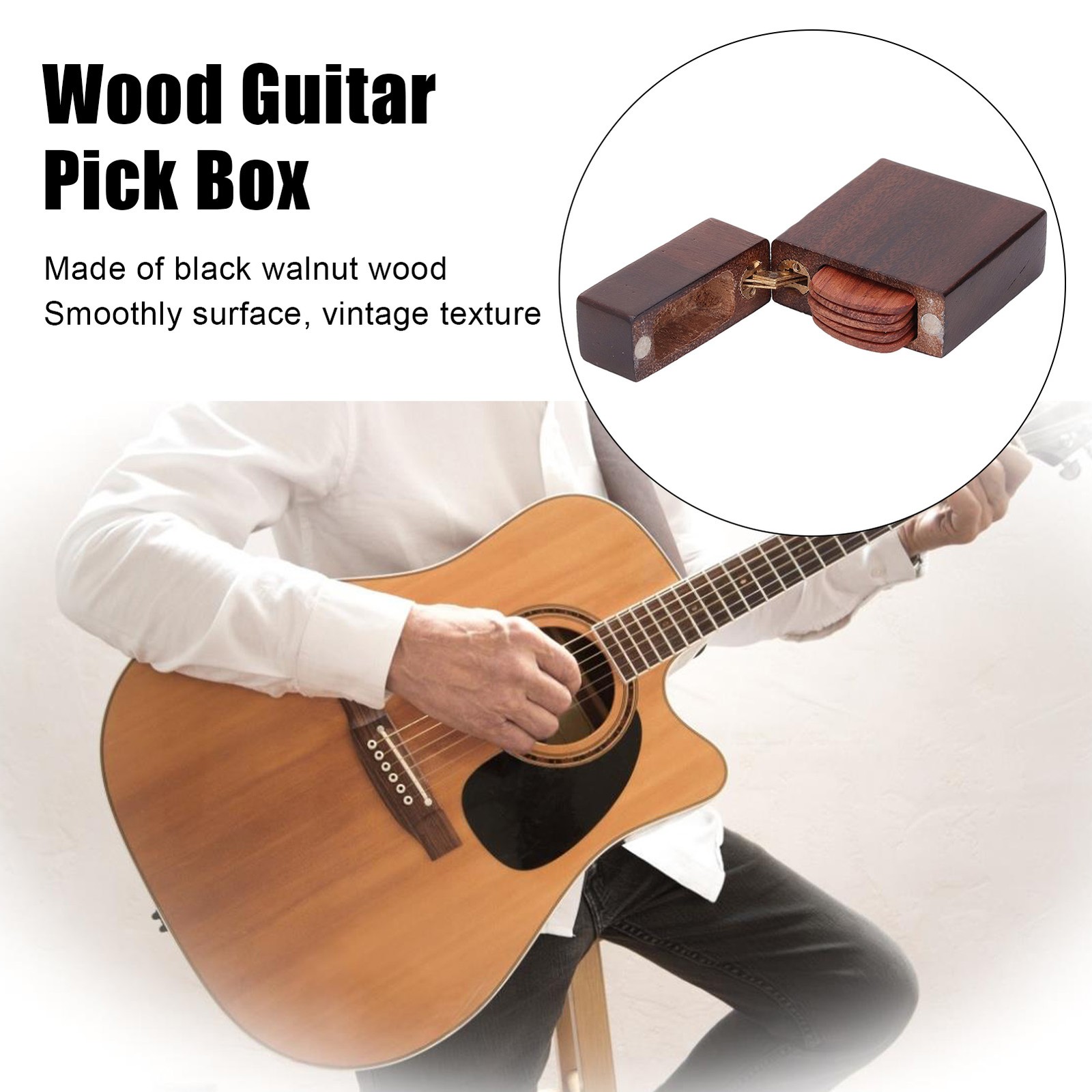 Guitar Pick Case, Black Walnut Wood Sturdy Construction Keep Picks Safe Safe -Pickbox Unique Lighter Form for Travel (with 5 Wood Picks)