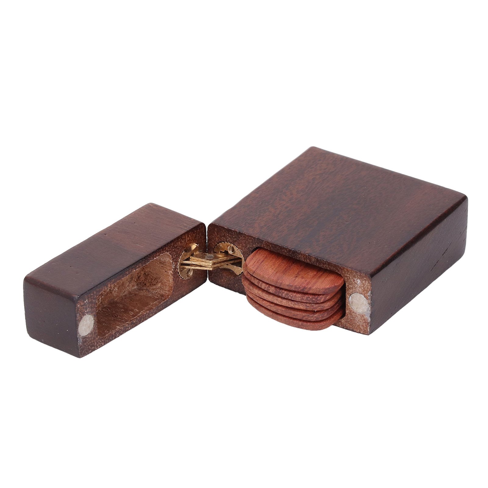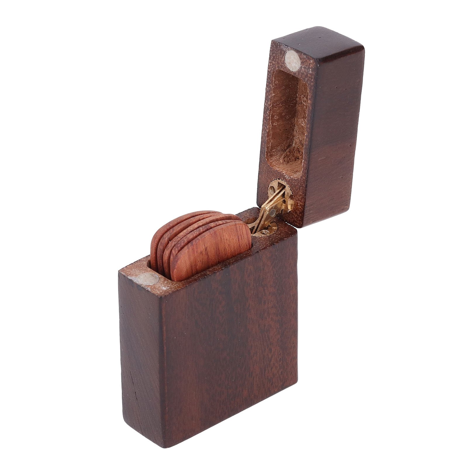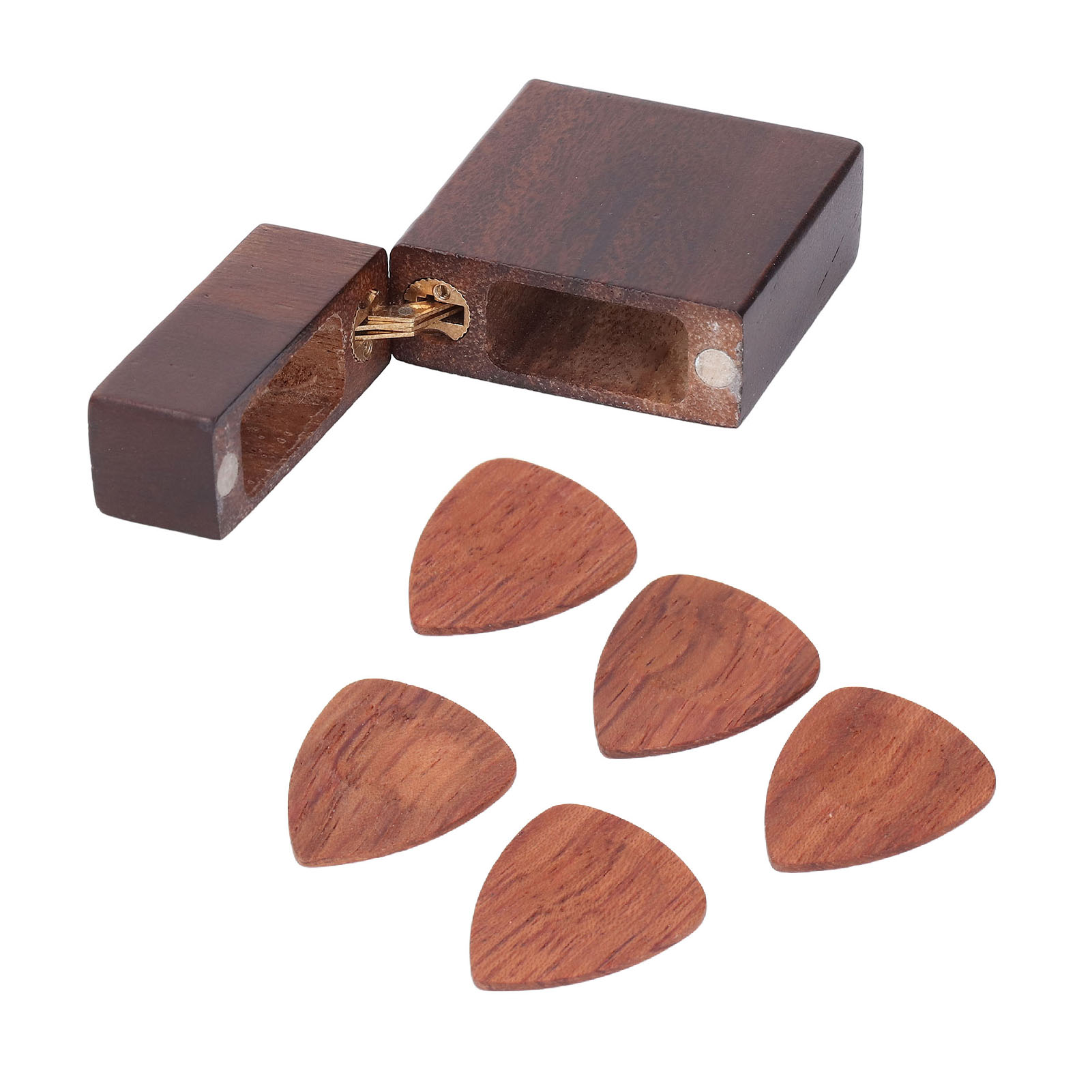 Guitar Pick Case, Black Walnut Wood Sturdy Construction Keep Picks Safe Safe -Pickbox Unique Lighter Form for Travel (with 5 Wood Picks)