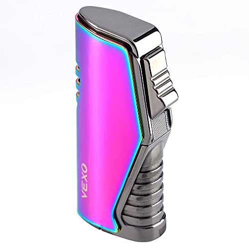 VEXO Unique Torch Triple Jet Flame Lighter with Gas Window - Refillable & Windproof Butane Fuel Lighter - Great Gift Idea (Rainbow)