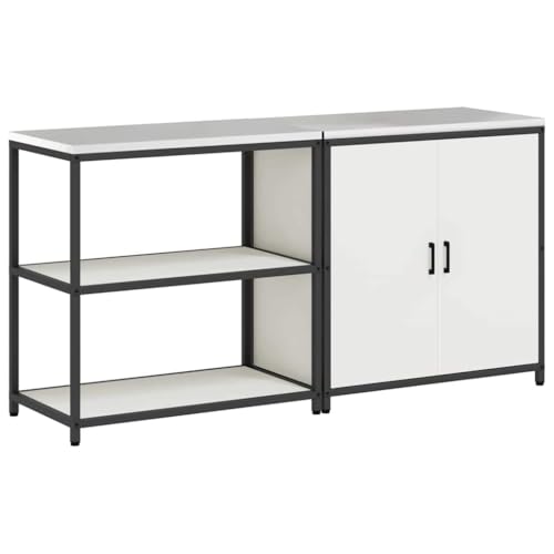 KTHLBRH White Kitchen Storage Set with Adjustable Shelf, 2 Piece Kitchen Storage Unit with Shelf White, Set 2 Pcs Cold-Rolled