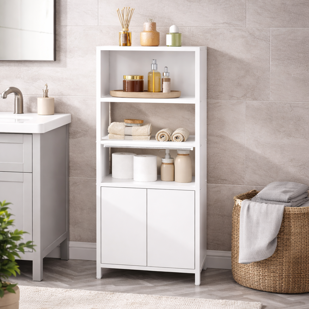 Bathroom Storage Cabinet Freestanding Cupboard Shelf Unit Organizer White